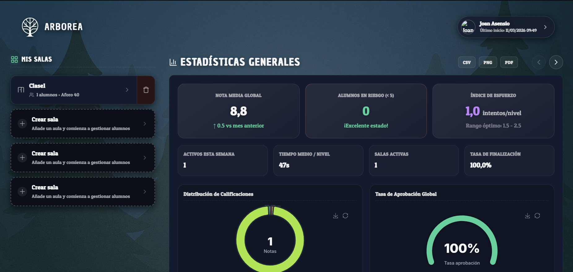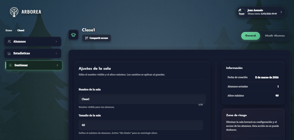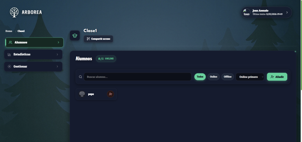 En esta iteración del proyecto Arborea hemos llevado a cabo el rediseño de la página del profesor con el objetivo de mejorar la usabilidad de la plataforma y ofrecer una interfaz más clara, intuitiva y profesional.