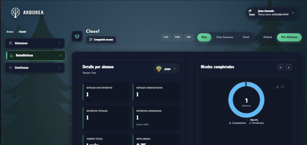 Con estos avances, Arborea sigue desarrollándose como una plataforma educativa moderna que combina tecnología, aprendizaje interactivo y una experiencia de usuario cuidada.